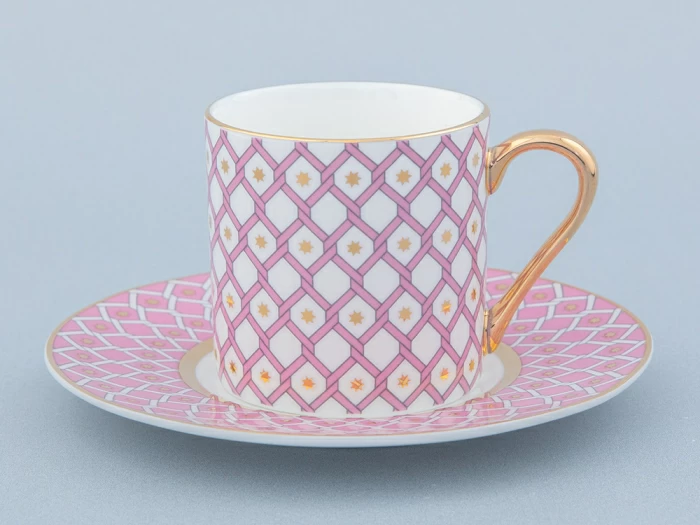 Enjoy a steaming cup of hot tea or coffee with the Lomonosov Imperial Bone China Porcelain Pink Espresso Cup Set on Idyll form. This nice coffee cup is made of porcelain by Lomonosov Imperial Porcelain Factory in St-Petersburg, Russia. The cup set will be a perfect gift for tea and coffee lovers and a perfect addition to any porcelain drinkware collection.