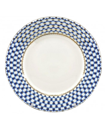 Enjoy your meal with the Lomonosov Imperial Porcelain Cobalt Net Dinner plate on European form. This item will be a perfect gift for porcelain lovers and a perfect addition to any porcelain tableware collection.