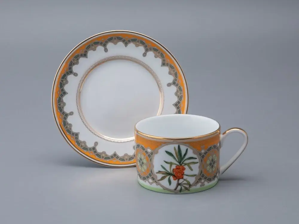 Lomonosov Porcelain cup and saucer Siberian Sea Buckthorn ,250ml