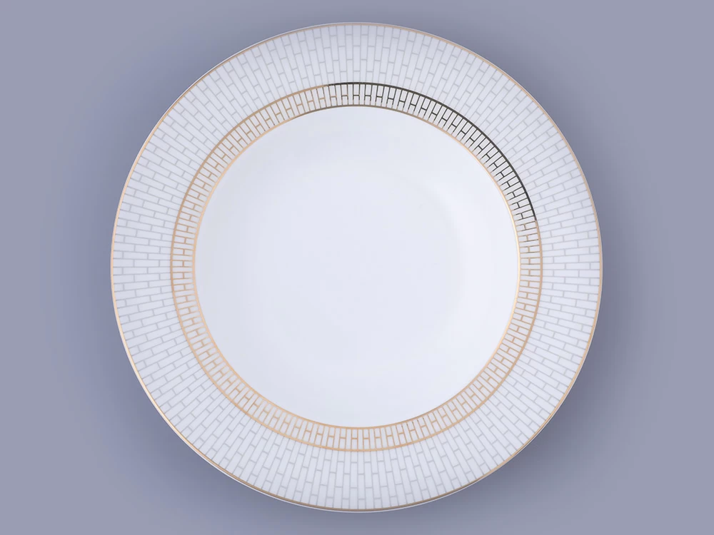 The refined design reflects the creature’s unusual, exotic markings. The “Salamander Gray” palette features a dignified gray shade with a soft pearlescent glow that accentuates the porcelain’s pure whiteness and harmonizes perfectly with the gold detailing. Because each piece carries a slightly different variation of the pattern, every table arrangement becomes eye-catching and memorable.